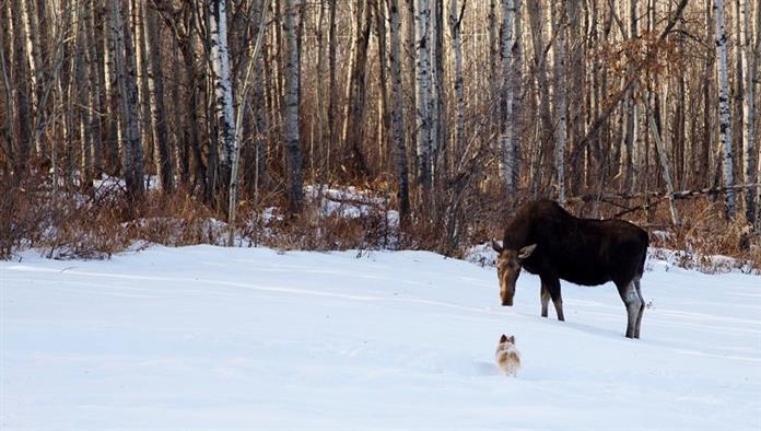 Moose vidí psy ako hrozbu a často sú prekvapení, keď štekajú alebo prenasledujú. Niektorí z nich pôjdu z kopu na psov.